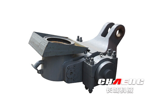 搖臂裝置主要由上搖臂、下?lián)u臂、搖臂軸、軸承及軸承座等部件組成。上搖臂用于安裝磨輥,下?lián)u臂連接液壓系統(tǒng),兩搖臂通過(guò)軸及錐套、錐銷(xiāo)連接成整體。